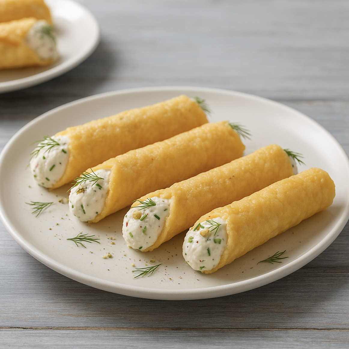 Un antipasto elegante e saporito che reinterpreta il classico cannolo in versione salata: cialde croccanti di Grana Padano che racchiudono un ripieno cremoso e aromatico. Perfetti per buffet, aperitivi o momenti speciali.